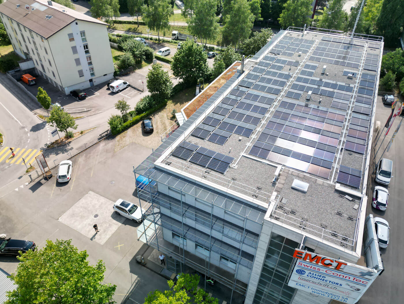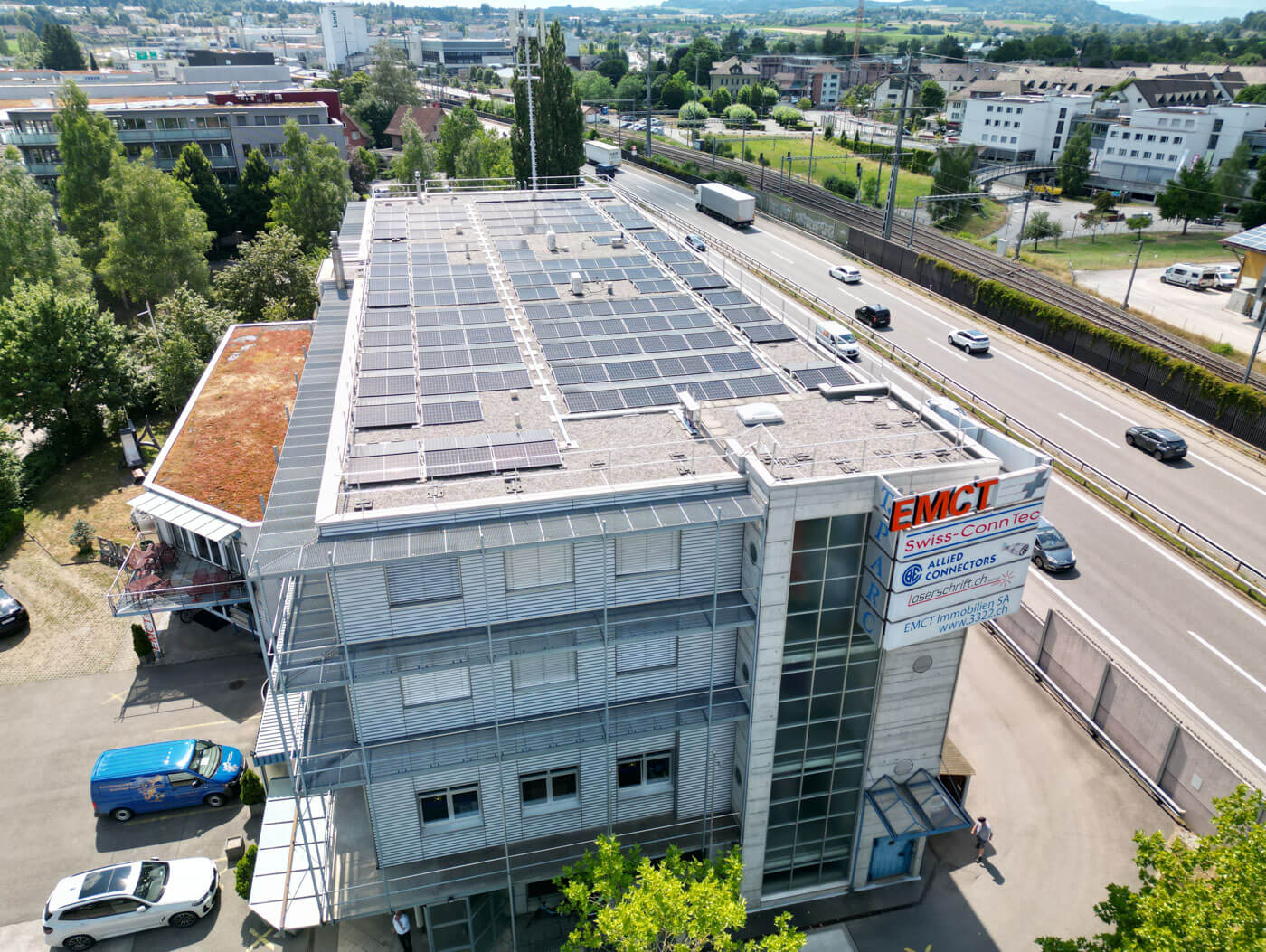 Nach der Sanierung des Flachdachs am Gewerbegebäude an der Grubenstrasse in Schönbühl konnte eine knapp 100 kWp starke Photovoltaikanlage realisiert werden. Der erzeugte Solarstrom wird über ein neu gegründetes ZEV (Zusammenschluss zum Eigenverbrauch) gemeinsam im Gebäude genutzt. Die Abrechnung übernimmt die Genossenschaft Elektra Jegenstorf.